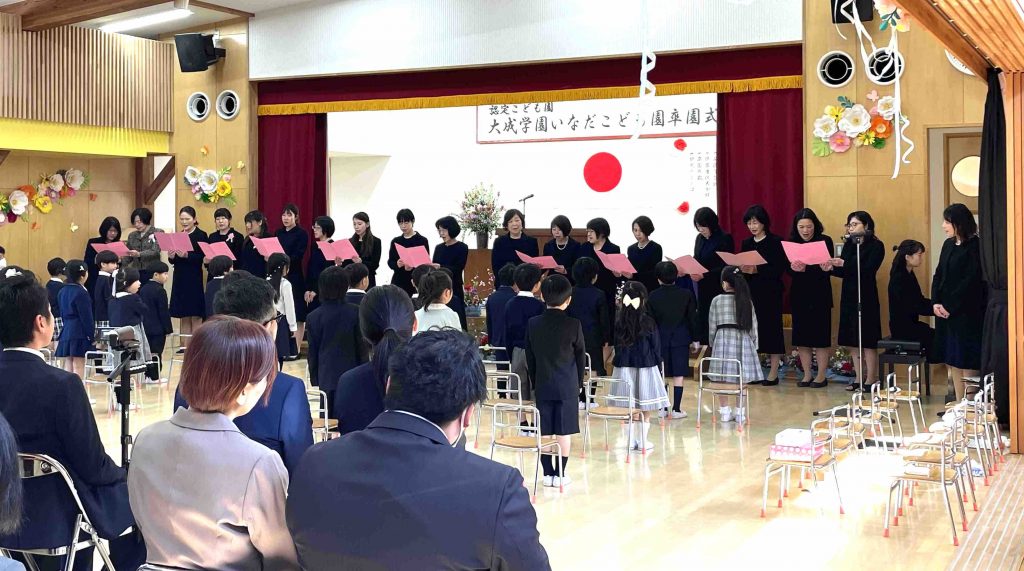 こうして、卒園式を無事に執り行うことができました。子どもたちの人生にとって、こども園で過ごした日々はほんの1部にすぎないかも知れません。しかし、幼児期をいなだこども園で過ごしたことは、子どもたちの将来に大きく関わってくるのだと思います。そして、ここまでお育てになられた親御さんたちに尊敬の意を表します。子どもたちの1番近くで見守り続け、計り知れない愛情を注いでくださいました。何より、子どもたちが1番愛する人です❤️これからも子どもたちと素敵な未来を作ってくださいね!!