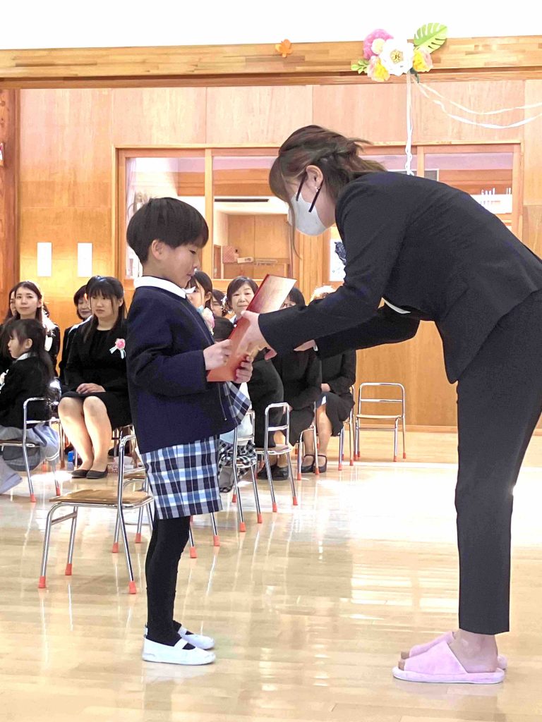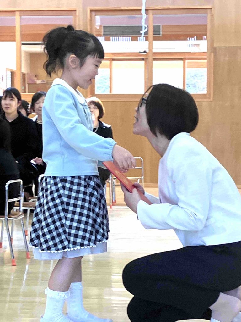 もらった証書はおうちの人へと渡ります。子どもたちの口から出る自然な『ありがとう』に涙が出ます