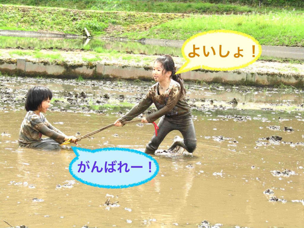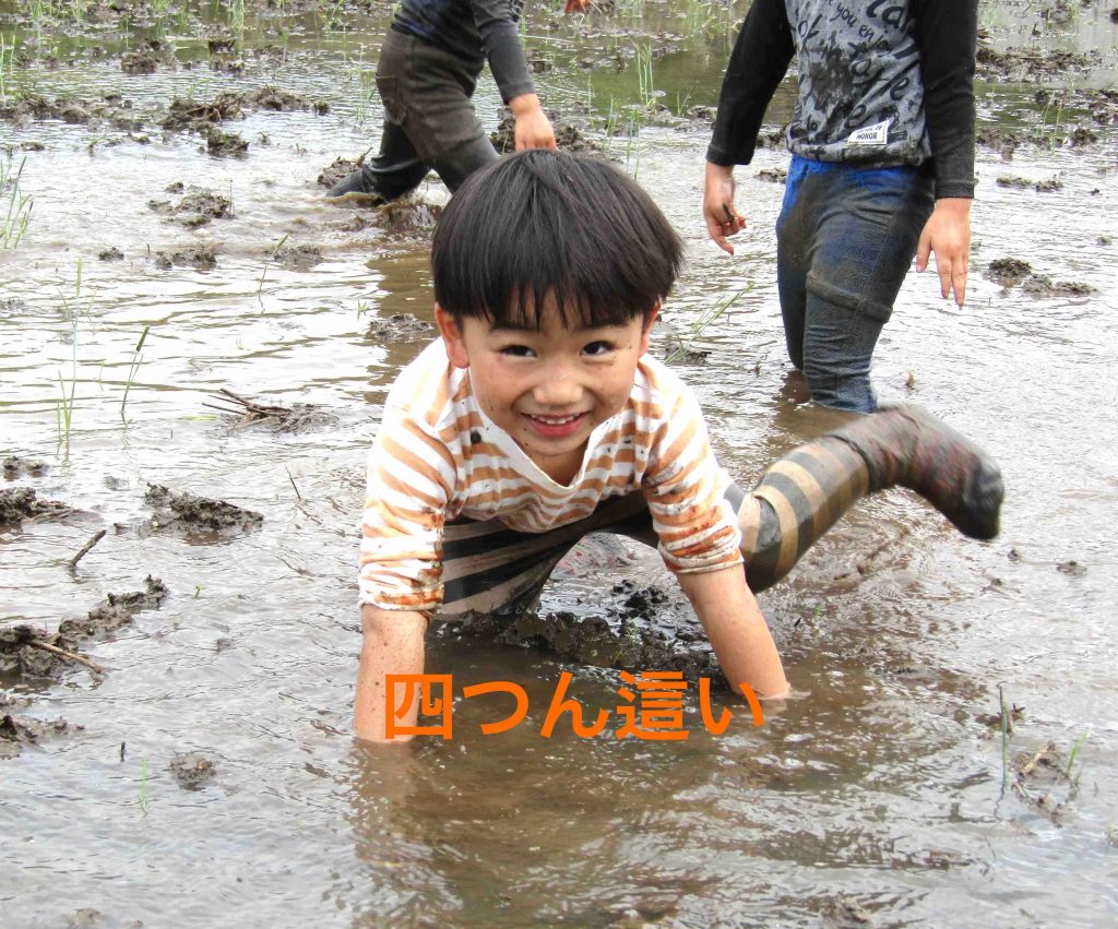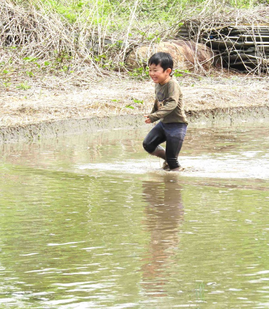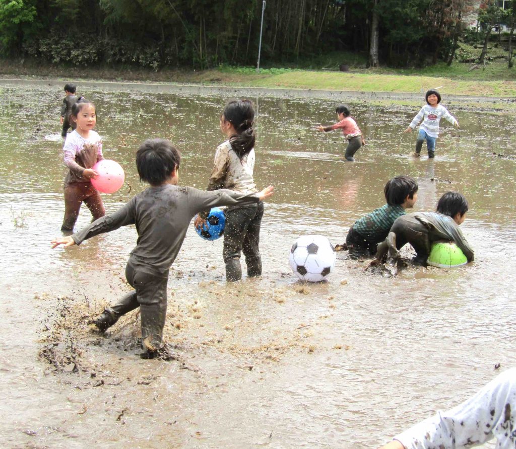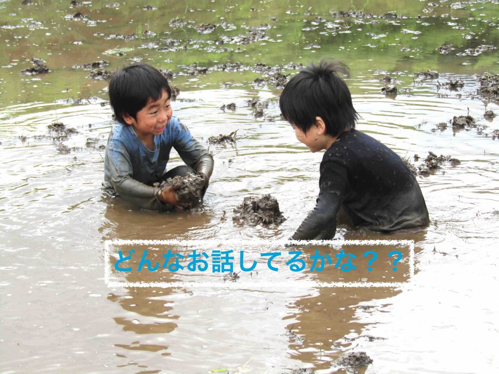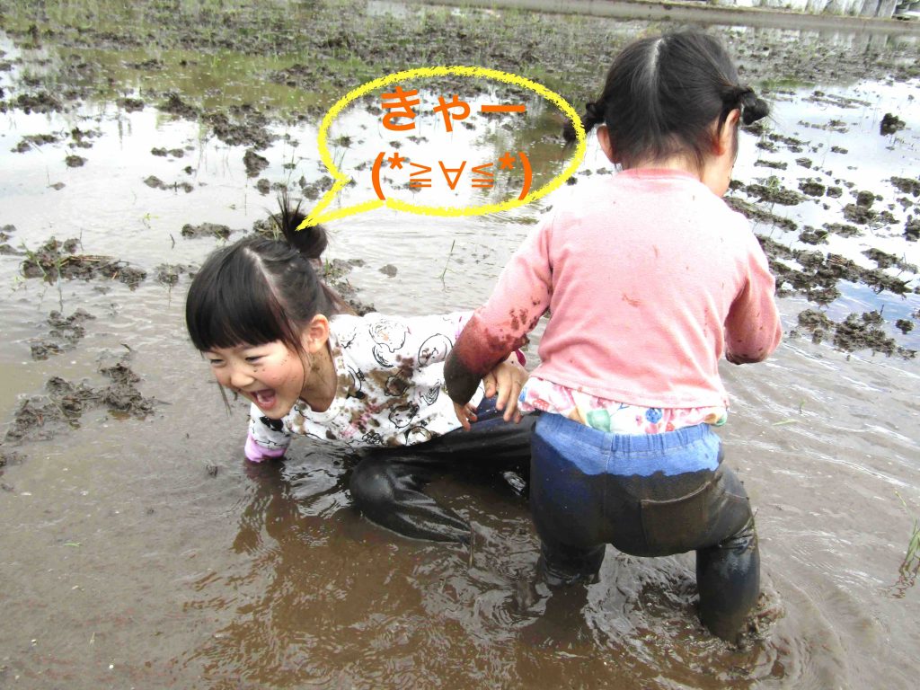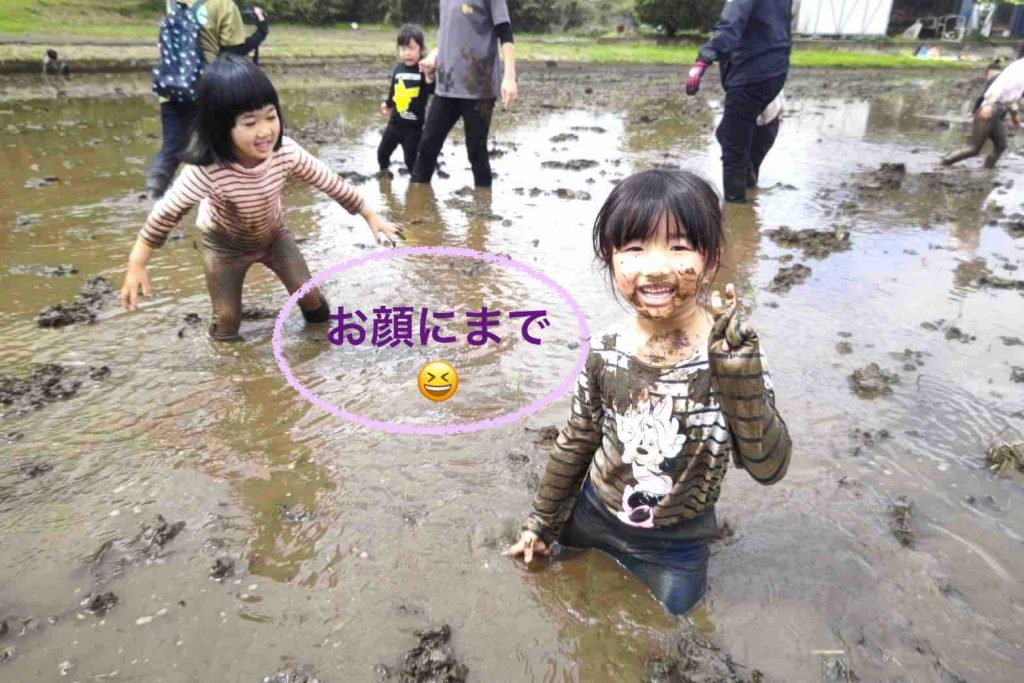 さぁ、田んぼの中にレッツゴー!!初めはそろりそろりと入る子どもたち。表情もそれぞれで、感じる事も違うのでしょうね😄