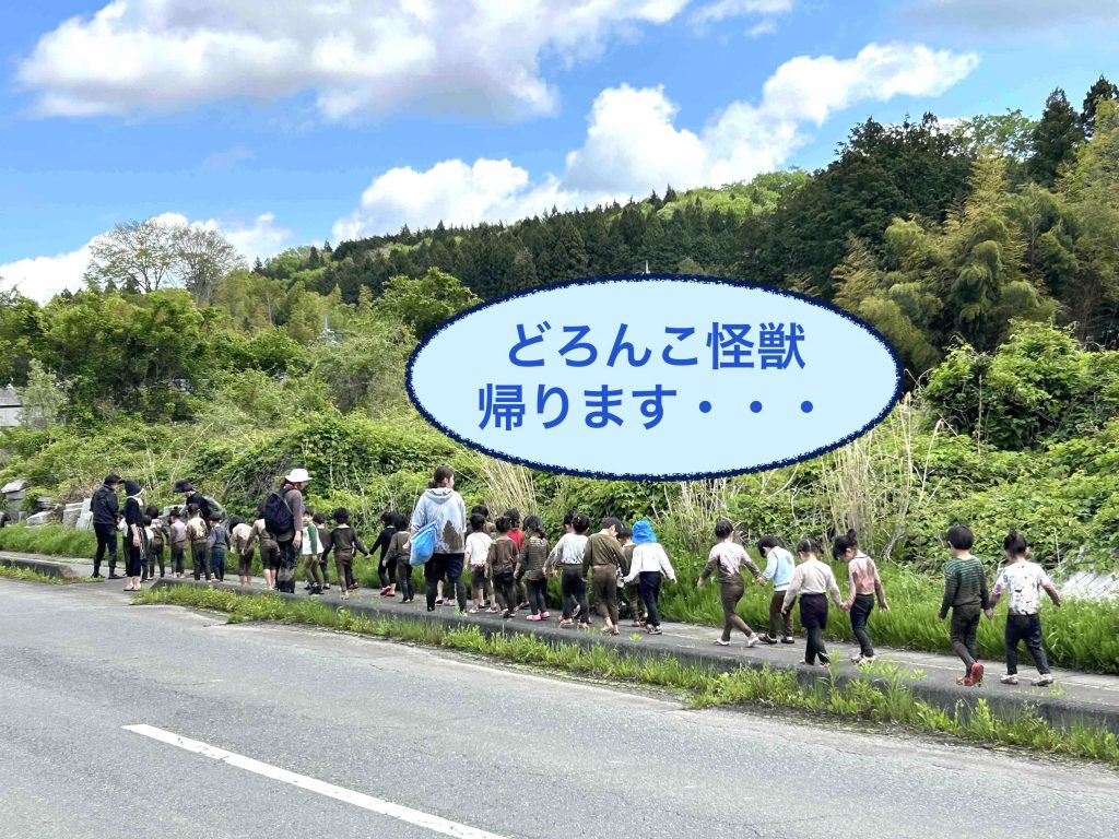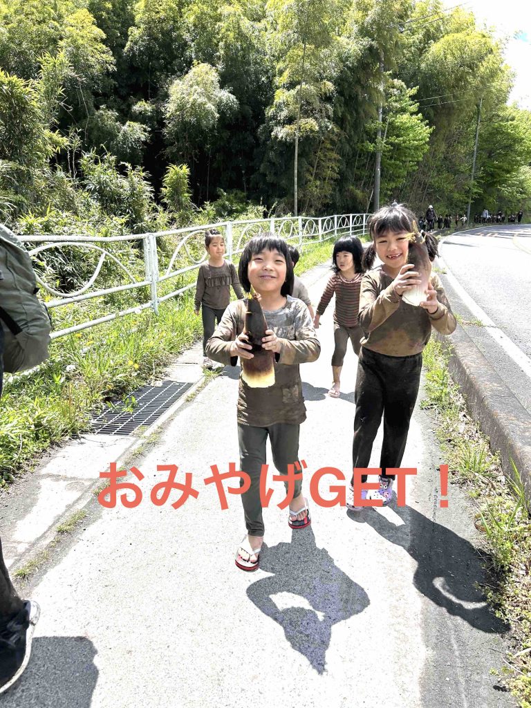 めいっぱい楽しんだ子どもたちは、まるでどろんこ怪獣🦖まだまだ遊びたい気持ちをおさえて、こども園に帰っています。途中でたけのこもGET!とっても楽しい1日となりました😊