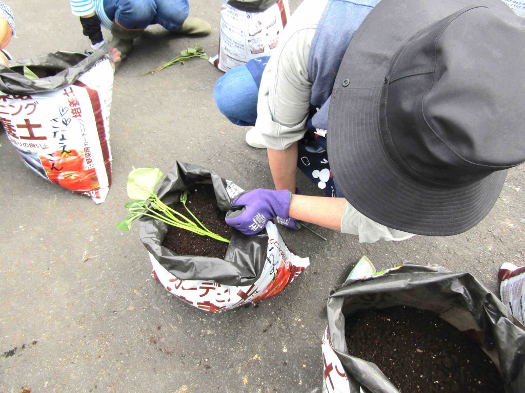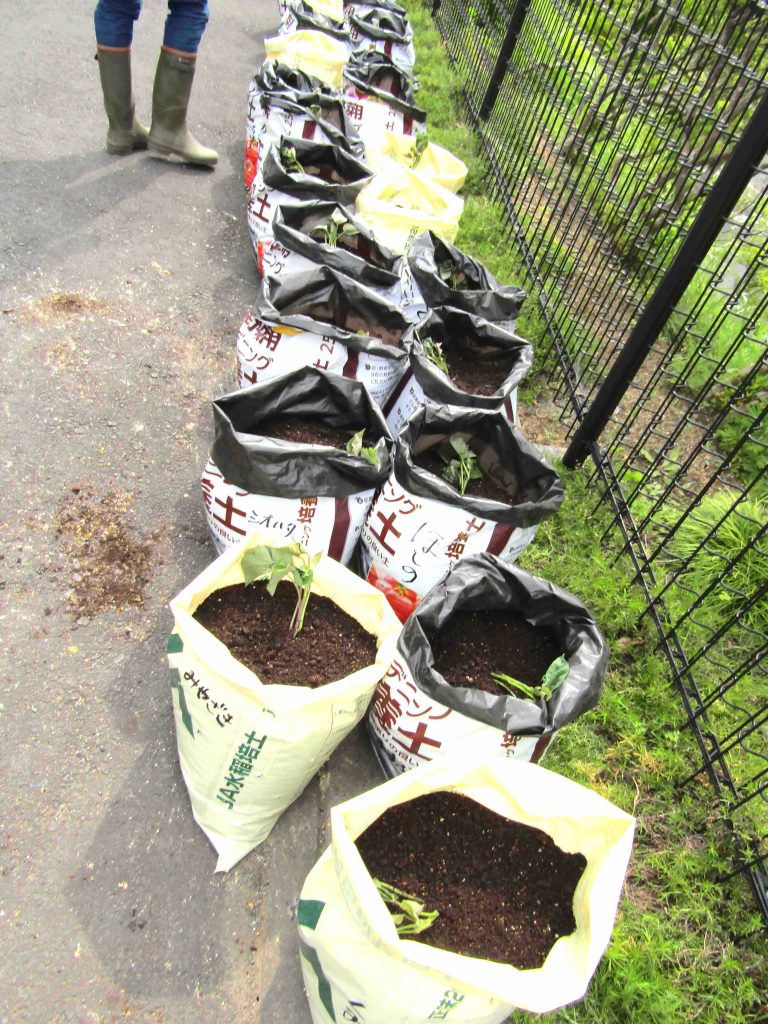 先生たちも子どもたちに負けないくらい大きなお芋を作るぞー!!と挑戦したのは、培養土袋での栽培です。1人1袋、自己管理で育てていきます🫡