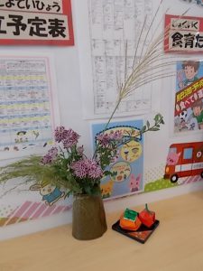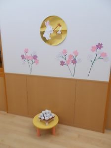 園でも玄関や、ホールにお供え物のお飾りをしました。