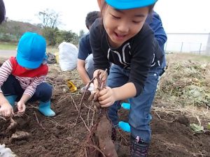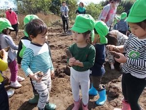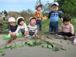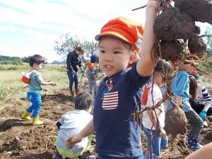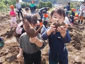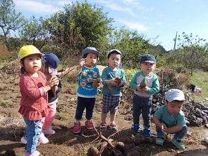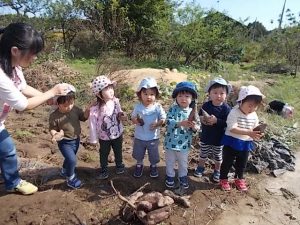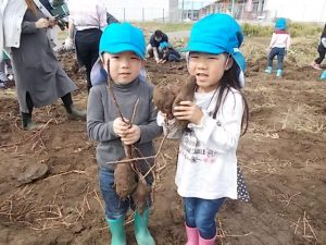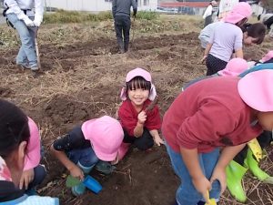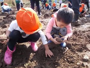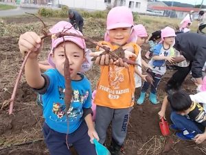 芋掘りを通して土の感触や匂い、土の中にいる虫を発見したりしながら自然とふれあう経験ができたと思います(^_^)