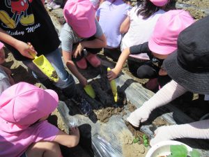 土を掘って、苗に優しく土をかけてあげました(^ ^)成長が楽しみですね。
