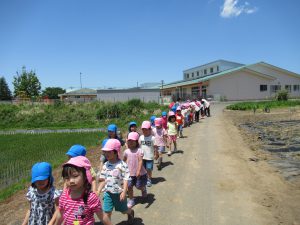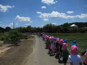 苗植えが終わったら、年長組さんと年中組さんはお散歩に出掛けました。