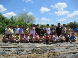 年長組さんで園の畑に野菜の苗(なす、オクラ、ピーマン、トマト)を植えに行きました?