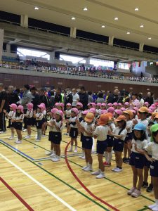 年長さんだけでしたが、他の園のお友達と一緒に楽しく体を動かしてきました。
