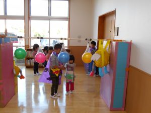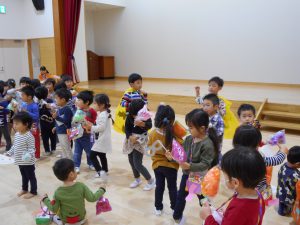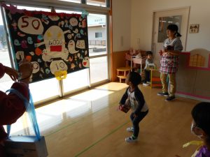 ホールに入ると好きなお菓子を選んで、みんなでパプリカを歌って踊りました♪年長さん、年中さんが小さいおともだちと手をつないで案内していました(o^^o)