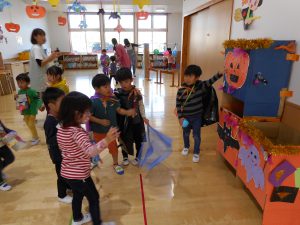 「ハッピーハロウィン〜♪」と子どもたちも楽しそう☆仮装もとってもすてきでした(^_^)