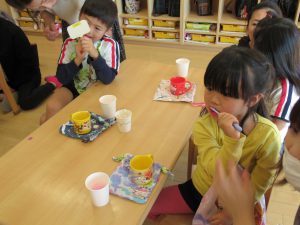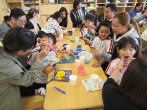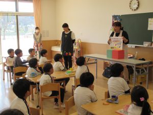 笠間市保健センターの方がいらして、年長児さんを対象に永久歯対策を行いました。