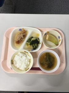 ごはん 鶏肉ママレード焼き 小松菜と油揚げの煮びたし バナナ みそ汁(わかめ・えのき・長ねぎ)