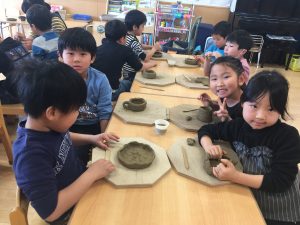 大津晃窯さんにお越しいただいて、陶芸を教えていただきました。