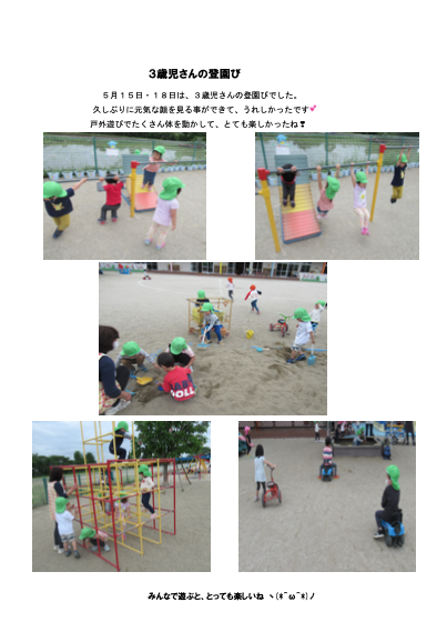 3歳児さんの登園日 2020 5/18 ニュース ニュース URLをコピーしました! 4歳児さんの登園日 分散登園日のお知らせ コメント コメントする コメントをキャンセルコメント ※ 名前 ※ メール ※ サイト 次回のコメントで使用するためブラウザーに自分の名前、メールアドレス、サイトを保存する。 上に表示された文字を入力してください。 Δ