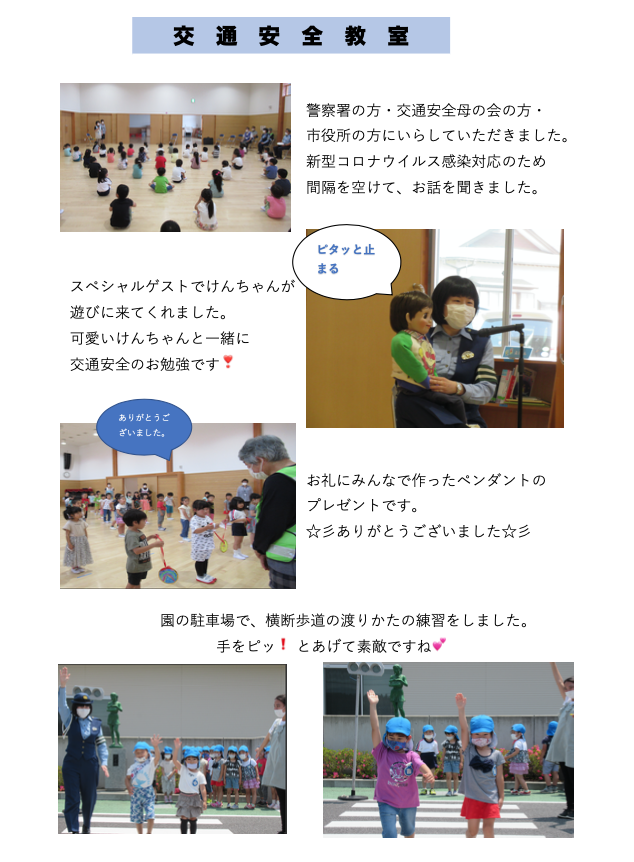 6月5日(金)交通安全教室 2020 6/05 ニュース ニュース URLをコピーしました! 6月の園だより・給食だより こあら・ぱんだ・ひつじ組が夢中! コメント コメントする コメントをキャンセルコメント ※ 名前 ※ メール ※ サイト 次回のコメントで使用するためブラウザーに自分の名前、メールアドレス、サイトを保存する。 上に表示された文字を入力してください。 Δ