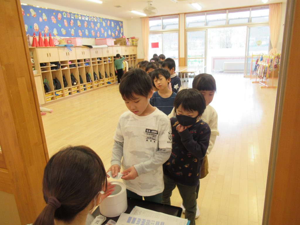 発表会の観覧席が決まりました。 2020 11/27 ニュース 最後の発表会になる年長さんは、観覧席をくじを引いて決定しました。まず、くじを引く順番をジャンケンで決めてスタートしました。年中さん、年少さんは、出席番号順で決めさせていただきました。 全員でのジャンケンは、なかなか決まりませんでした。 ジャンケンの輪が少しづつ小さくなり番号札を引く順番が決まっていきました。 番号札を引いて席が決まりました。 ニュース URLをコピーしました! 畑作りにお父さんのパワー! 大根の収穫 コメント コメントする コメントをキャンセルコメント ※ 名前 ※ メール ※ サイト 次回のコメントで使用するためブラウザーに自分の名前、メールアドレス、サイトを保存する。 上に表示された文字を入力してください。 Δ