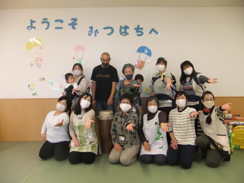 大成学園かさまこども園内の支援センター「みつばち」での楽しいひと時をお知らせします。「みつばち」に遊びに来ているお友達のご両親にアフリカンダンスを教えていただきました。太鼓のリズムに合わせて全身を使って表現・・・とっても気持ちの良い楽しい時間でした。太鼓のリズムが心地よく耳に残ります・・・!