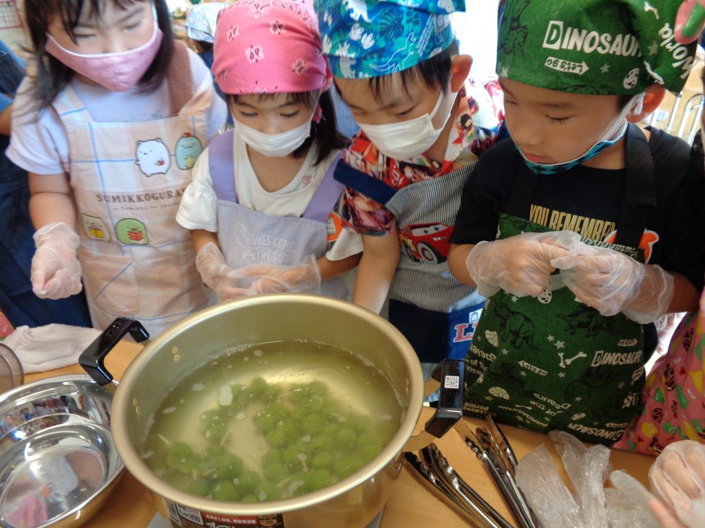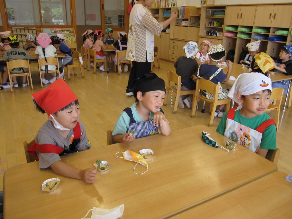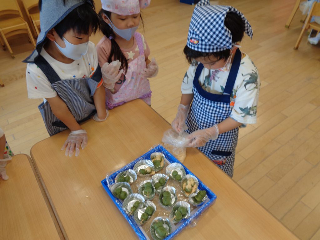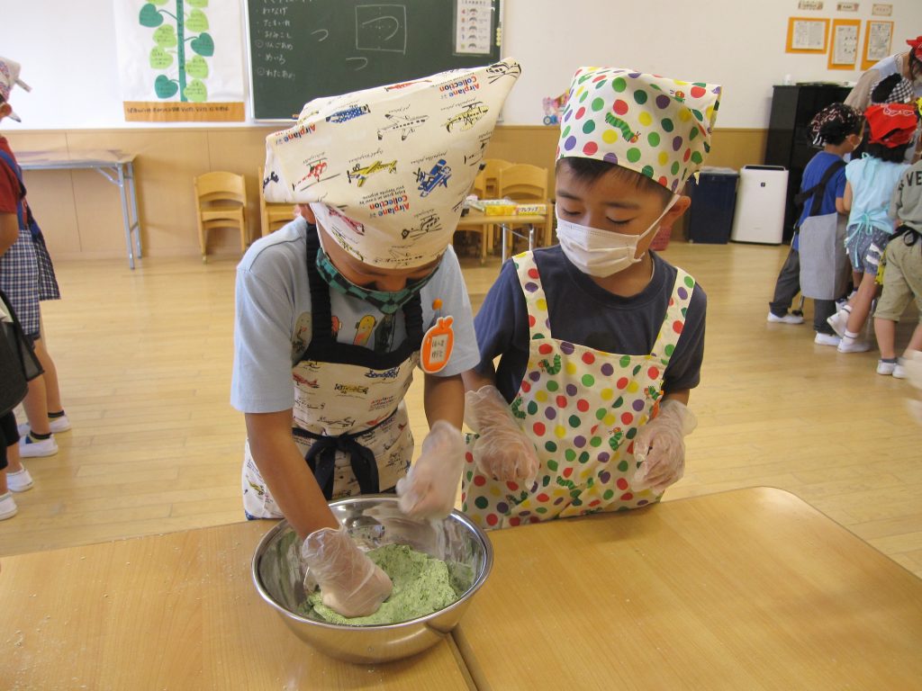 草団子を作りました。 2021 6/03 ニュース ”よもぎ”は、お散歩で積みレンジでチンして冷凍保存をしておきました。ミキサーでペースト状にしてクッキング開始です。まずは、エプロン披露からスタートし、こねて丸めて食するまでワクワクの作業が続きました。 鍋底から離れプカリプカリ浮き上がるのを待ちます。 仕上げは、きな粉をまぶします。 「いただきます」「おいし〜い!」 ニュース URLをコピーしました! 交通安全教室に参加 うさぎ組(2歳児)と”みつばち”のお友達 コメント コメントする コメントをキャンセルコメント ※ 名前 ※ メール ※ サイト 次回のコメントで使用するためブラウザーに自分の名前、メールアドレス、サイトを保存する。 上に表示された文字を入力してください。 Δ