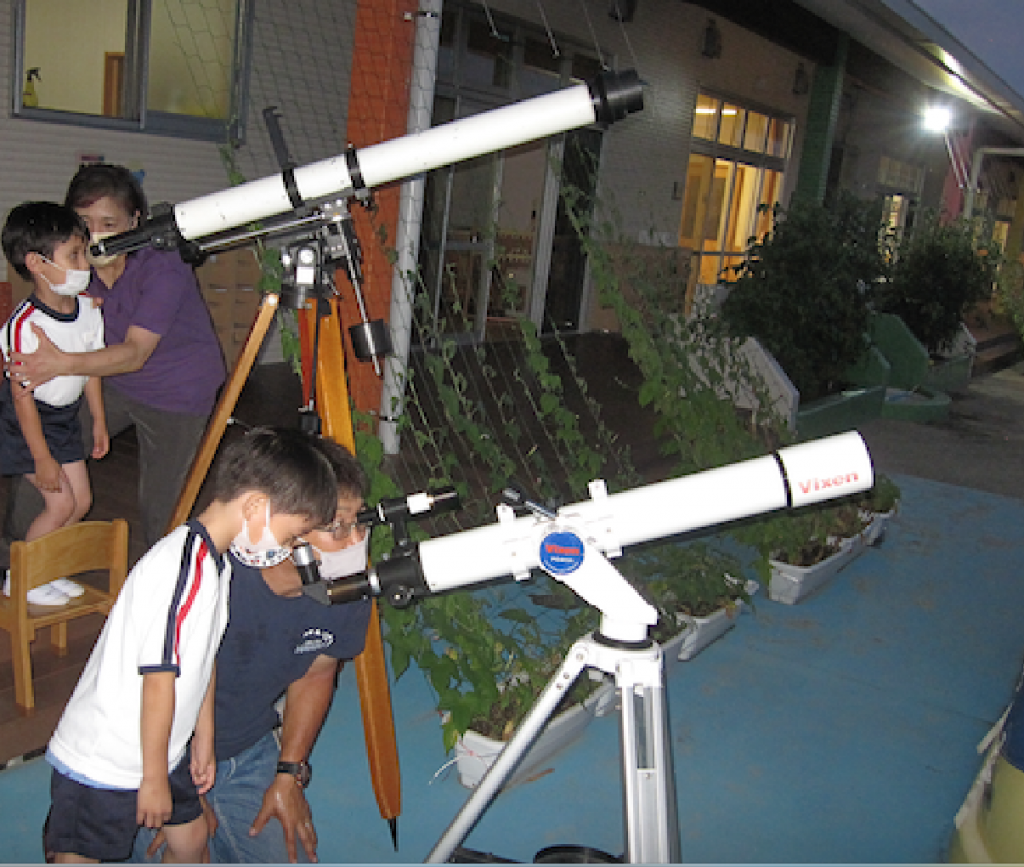 ナイトフェスタ(2021.7.21) 2021 7/26 ニュース 今年の7月の満月は7/24(バックムーン)です。3日前の月をみました。明るい時間から月を見ることができ興奮の月観測時間が持てました。時間とともに月の色が変化し、園庭に飾った灯籠にろうそくの炎がゆれ幻想的なナイトフェスタが出現しました。 ナイトフェスタの通路を年長児みんなで作りました。 灯籠の間から打ち上げ花火・・ ニュース URLをコピーしました! かさこフェスタ 0歳・1歳・ 2歳・満3歳クラスの家庭教育学級開催 コメント コメントする コメントをキャンセルコメント ※ 名前 ※ メール ※ サイト 次回のコメントで使用するためブラウザーに自分の名前、メールアドレス、サイトを保存する。 上に表示された文字を入力してください。 Δ