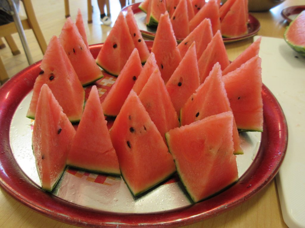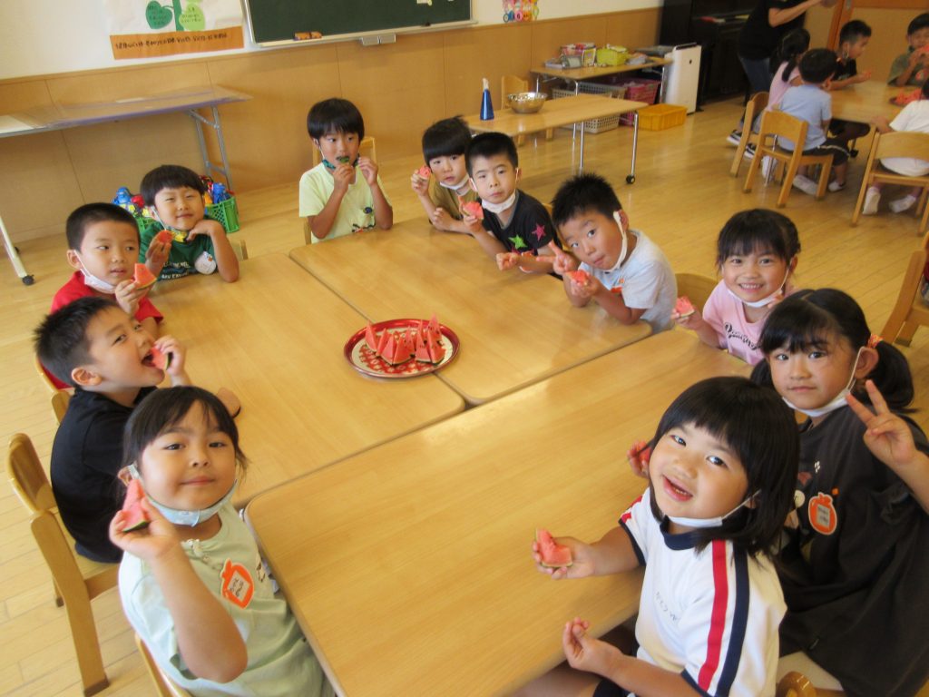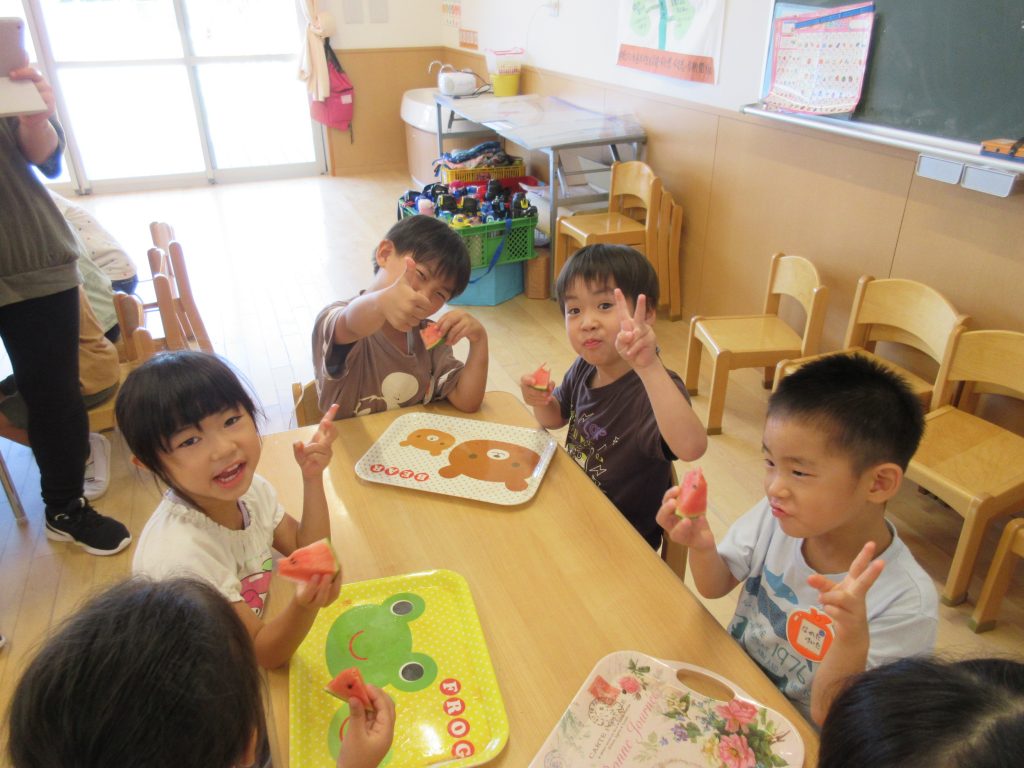 甘いスイカが採れました。 2021 8/06 ニュース 今日は、登園日!みんなで顔を合わせてにニコニコです。早速スイカ畑に行き、どのスイカが甘いかを見極めて収穫しました。ぞう組・らいおん組1個ずつ採りました。「あま〜い!」と大興奮・・・「スイカを作って食べたい」また一つ年長さんの願いがかないました。 誰も甘いところが食べられるように切ってみました。 ニュース URLをコピーしました! 0歳・1歳・ 2歳・満3歳クラスの家庭教育学級開催 幼虫の引っ越し・・! コメント コメントする コメントをキャンセルコメント ※ 名前 ※ メール ※ サイト 次回のコメントで使用するためブラウザーに自分の名前、メールアドレス、サイトを保存する。 上に表示された文字を入力してください。 Δ