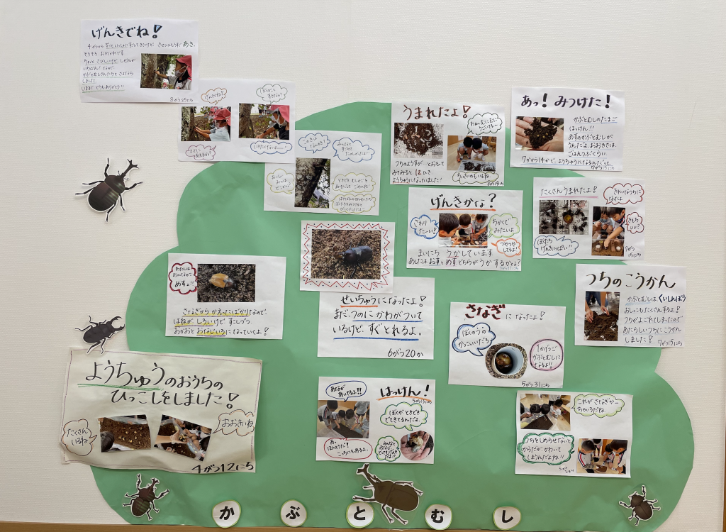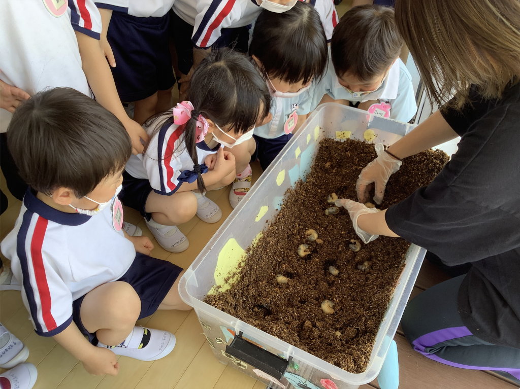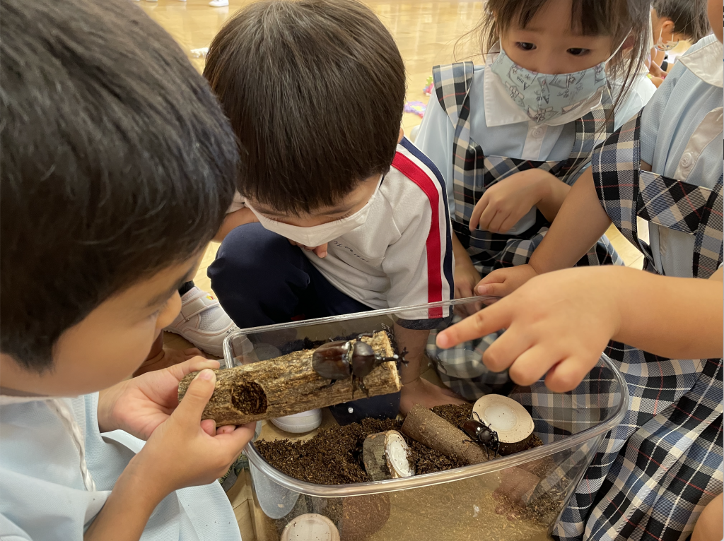 4月から5ヶ月間変化していくかぶと虫に触れ、生命の不思議さや尊さに気づいた子どもたち。変化する自然の面白さを体験しながら、優しい気持ちや命の大切さ、責任を感じ関わることができました。