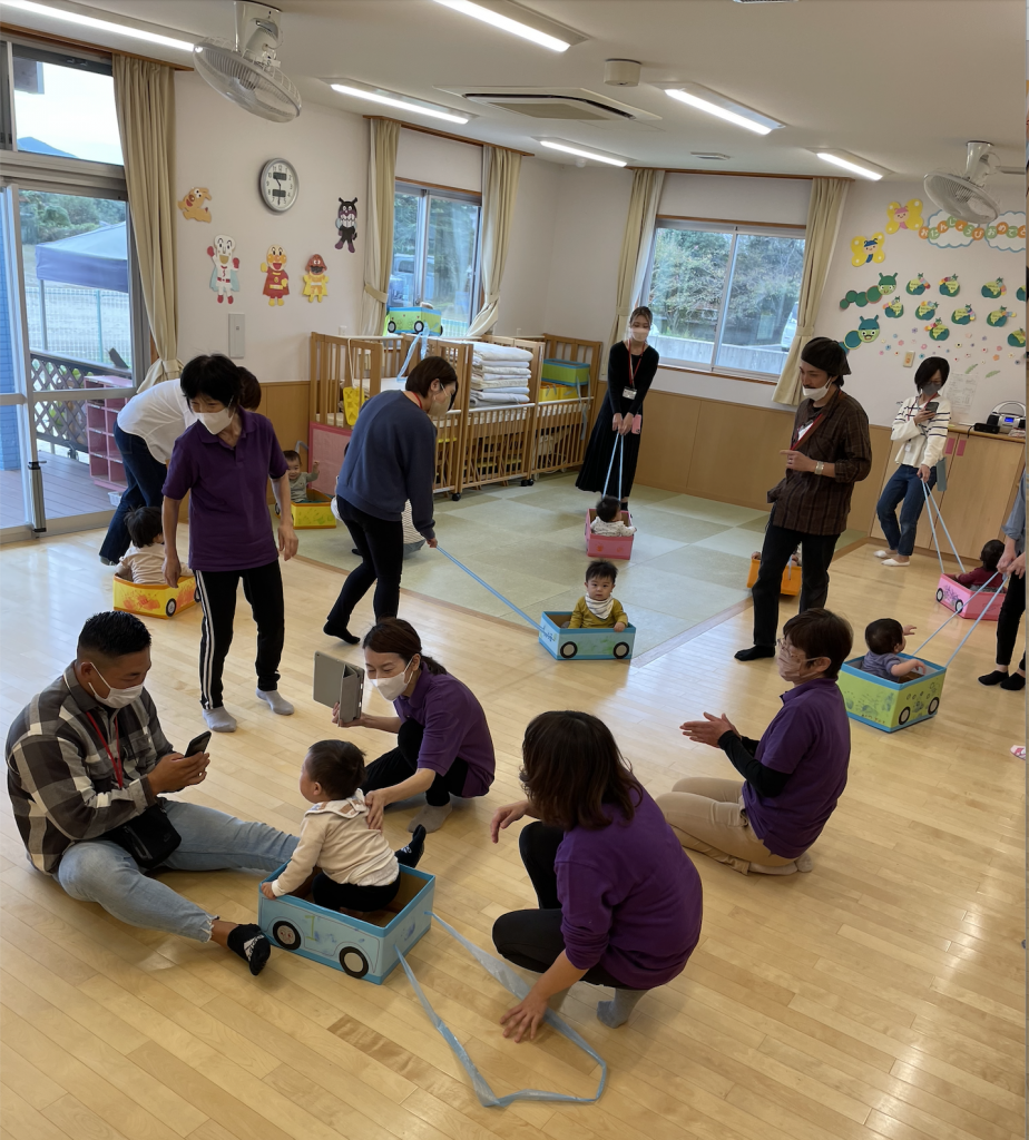 今日は、0・1・2歳児のミニ運動会を親子で行いました。今年は各学年ごとに開催です!