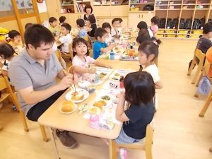 英語教室が終わったら、くま組さんと一緒にお給食も食べました(^ ^)