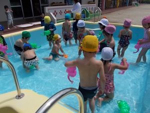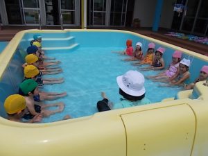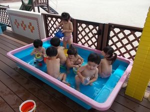 りす組さんもテラスでプール遊びをしましたよ〜^ – ^
