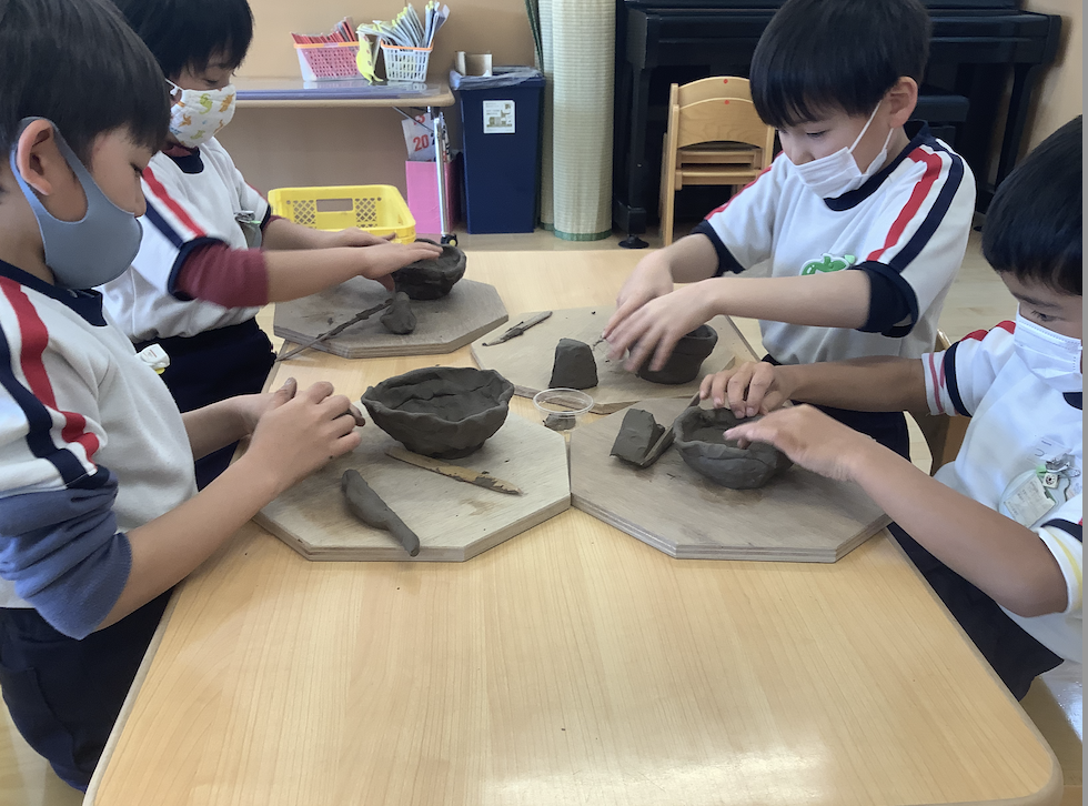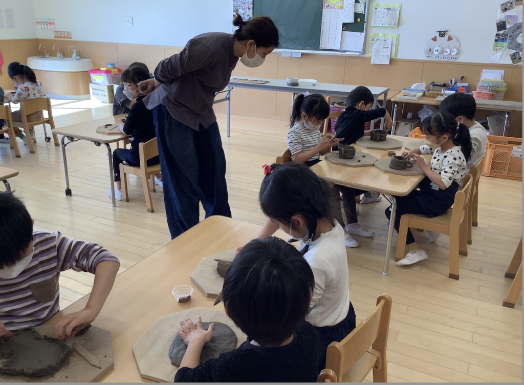 今日は、地元の窯元 大津晃窯さんの方に来ていただき卒園記念に陶芸製作を行いました。