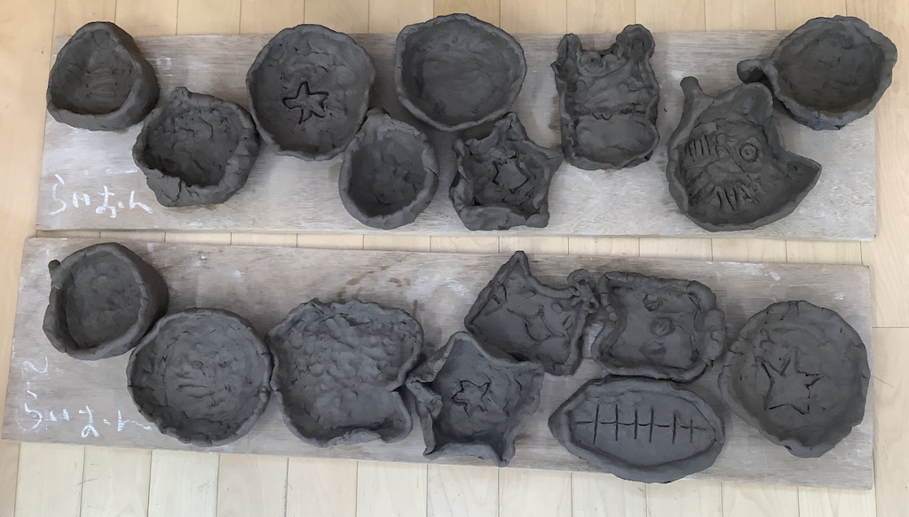 お皿かおわん、どっちを作るか自分で選び、思い思いの形に仕上げ個性豊かな作品となりました。