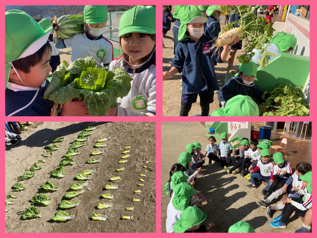 冬に育つ野菜は何かな?そんな疑問を子どもたちと考え、育て始めた大根と白菜!立派に育ち収穫の日を迎えました。