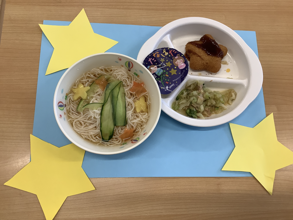今日は七夕🎋ということで、以上児のお友達は七夕の会に参加しました。