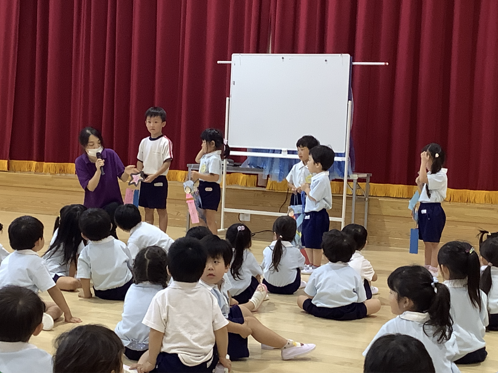七夕のお話をよく聞いていた子どもたち、クイズもたくさん正解できていました!!