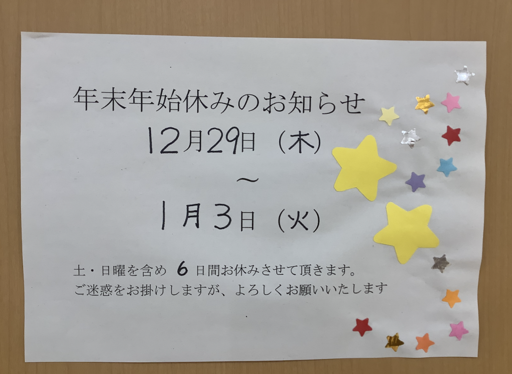 1月4日(水)より通常通り開所いたします。