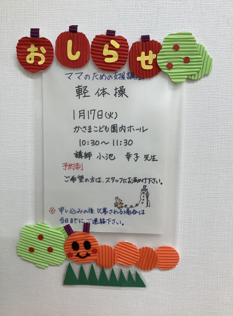 1月17日(火)にママのための軽体操を行います!!