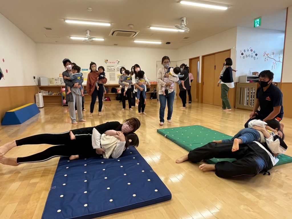 転がり遊びは、転んだ時の体の使い方が身に付くそうです。