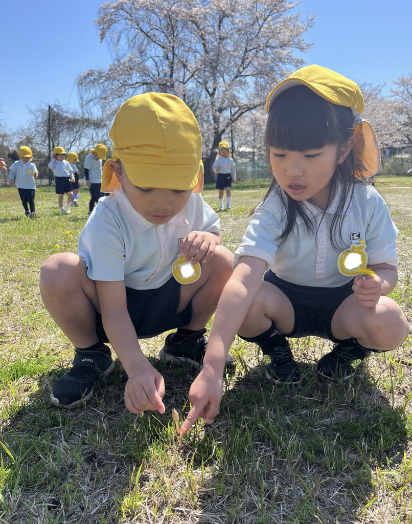 「桜奇麗だね✨」「つくし見つけたよ〜🤩」「あ!カエルもいた🐸!」