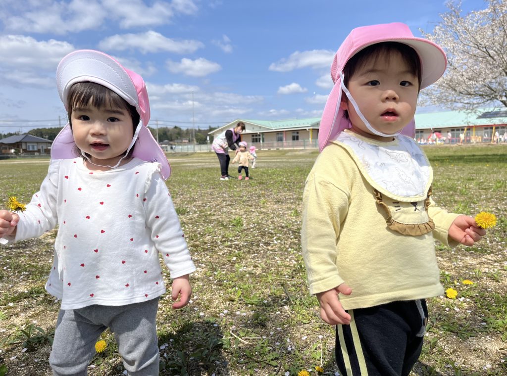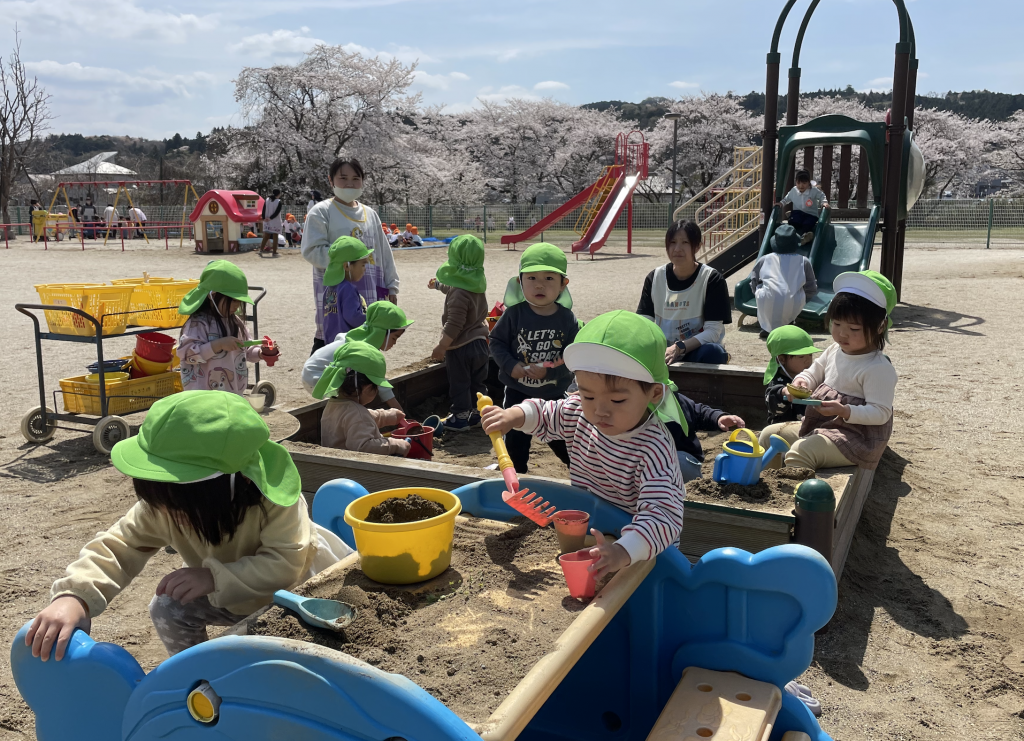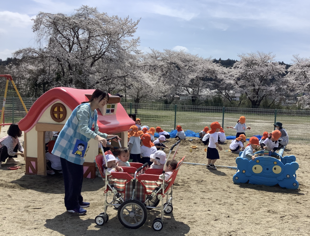 園庭でも桜を見ながら砂遊びやお散歩をして元気いっぱい過ごしています😆🌟