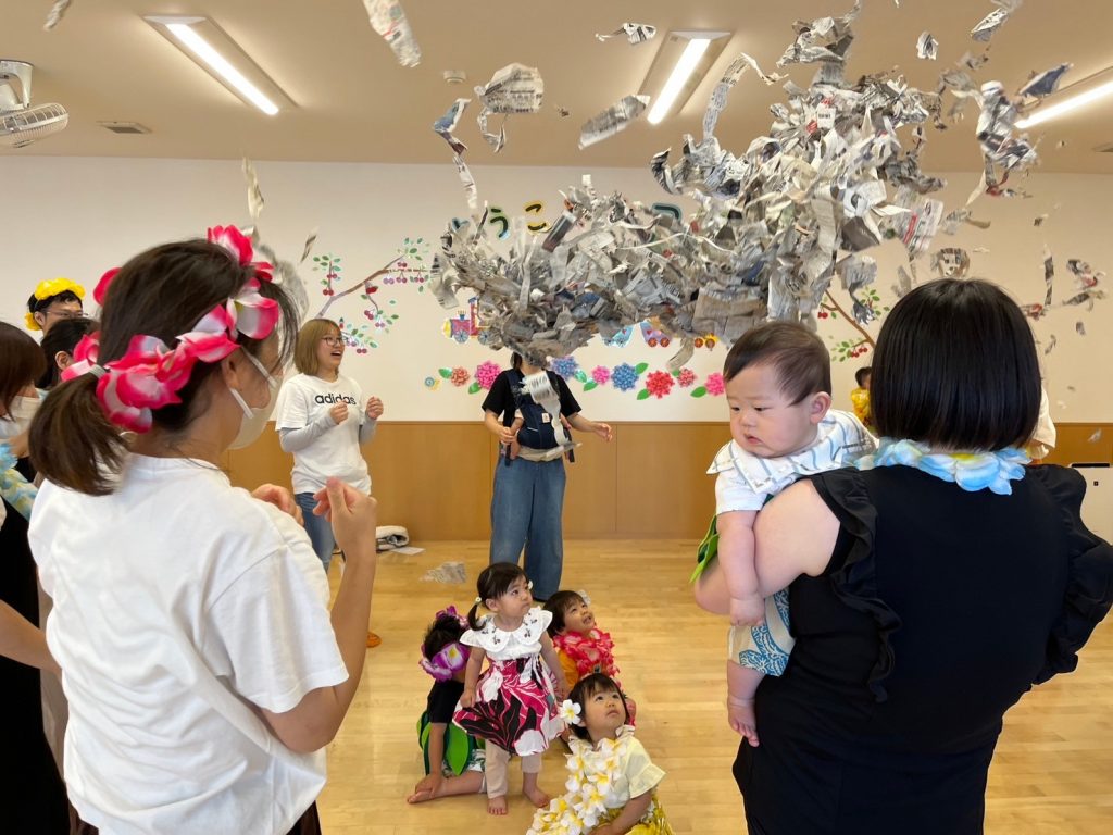 新聞のお魚が上からふって来て、子どもたちも大喜び!