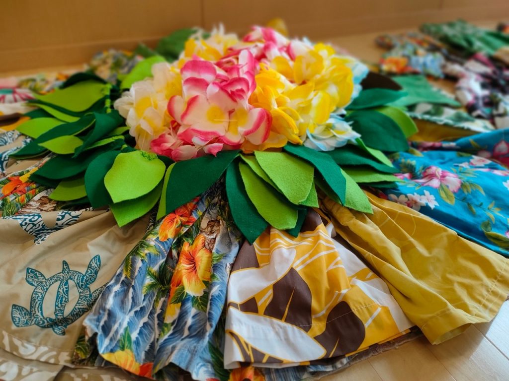 手作りの素敵な衣装を身につけてハワイアンリトミックを体験しました