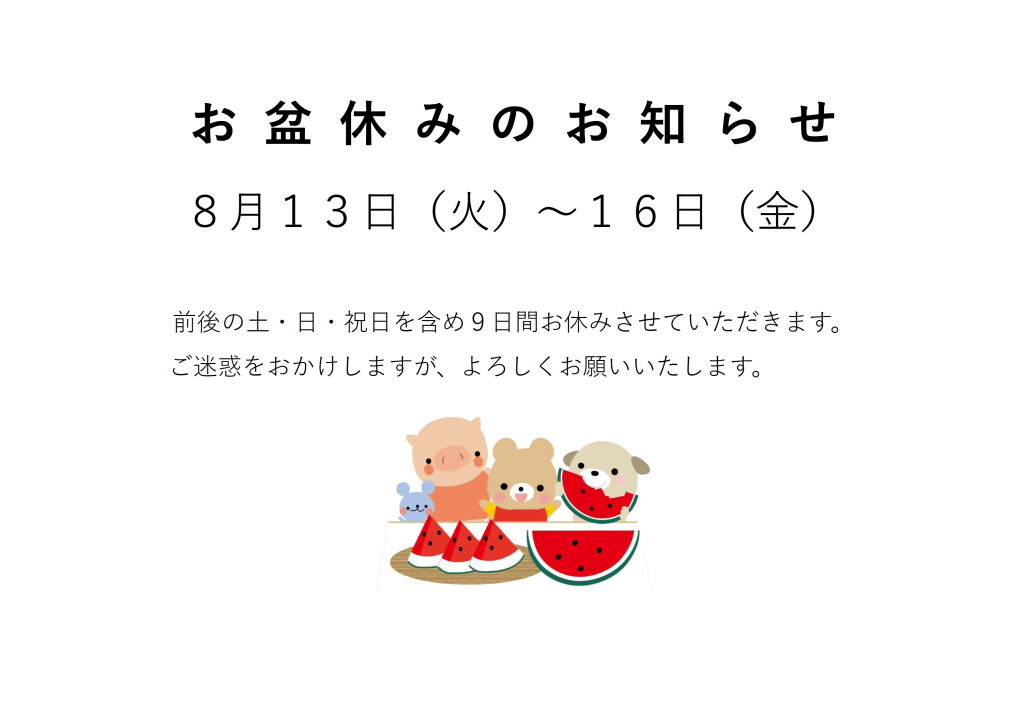 子育て支援センターみつばち お盆休みのお知らせ 2024 8/06 子育て支援センターみつばち 子育て支援センターみつばち URLをコピーしました! 子育て支援センターみつばち 保育園・こども園の入園に関する説明会のお知らせ 入園案内(pdf)・園児募集要項を更新しました🌸 コメント コメントする コメントをキャンセルコメント ※ 名前 ※ メール ※ サイト 次回のコメントで使用するためブラウザーに自分の名前、メールアドレス、サイトを保存する。 上に表示された文字を入力してください。 Δ