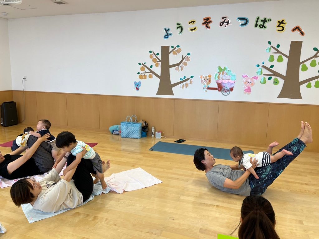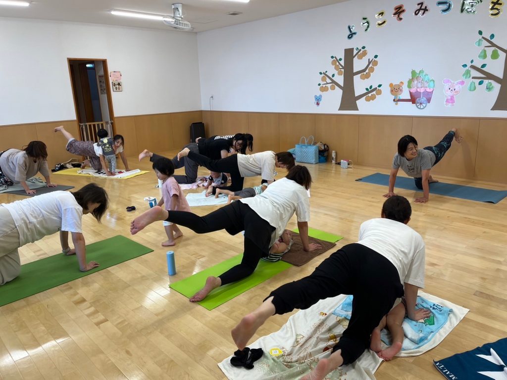 我が子の体温を感じながら、ママもいろんなヨガのポーズに挑戦。
