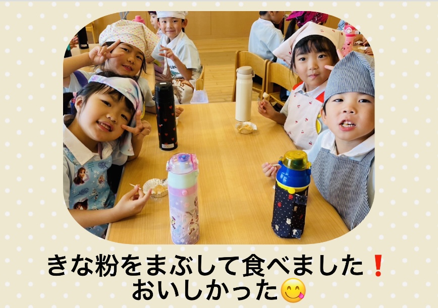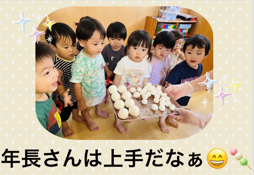 年長さんも、『おいしいね〜!』と、ニコニコの笑顔でお団子を食べていました😊
