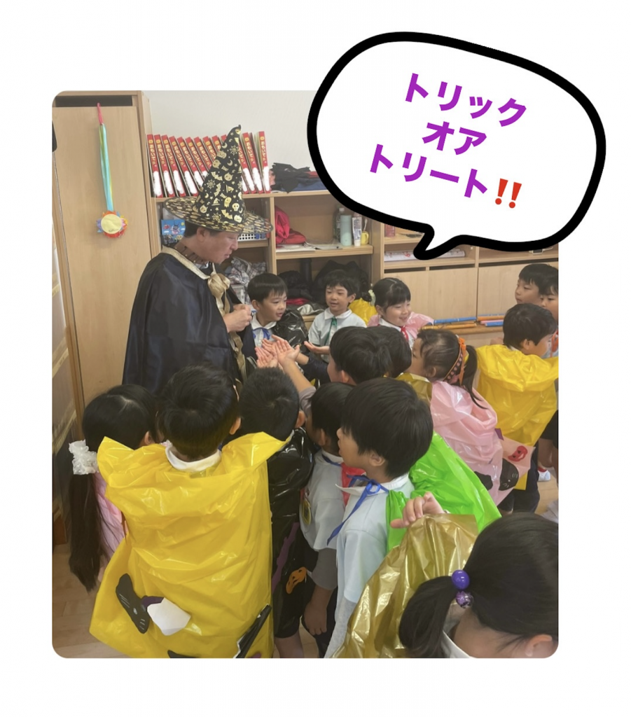 魔女を発見👀‼️夢中になって「トリックオアトリート!」と合言葉を伝える子どもたち😆