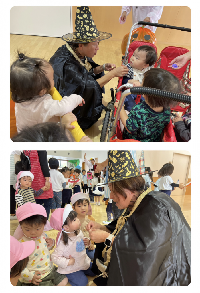 「オバケだぞ〜👻」「年長さんのお洋服かっこいいね😃✨」自然と会話も弾みます🎶