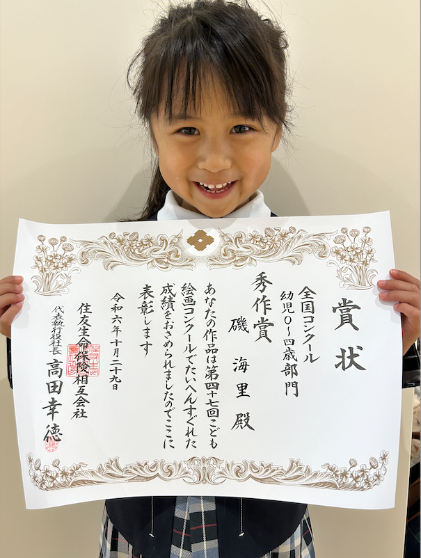 第47回住友生命絵画コンクールでかさまこども園の年中児、磯海里さんが見事『秀作賞』に入賞しました。
