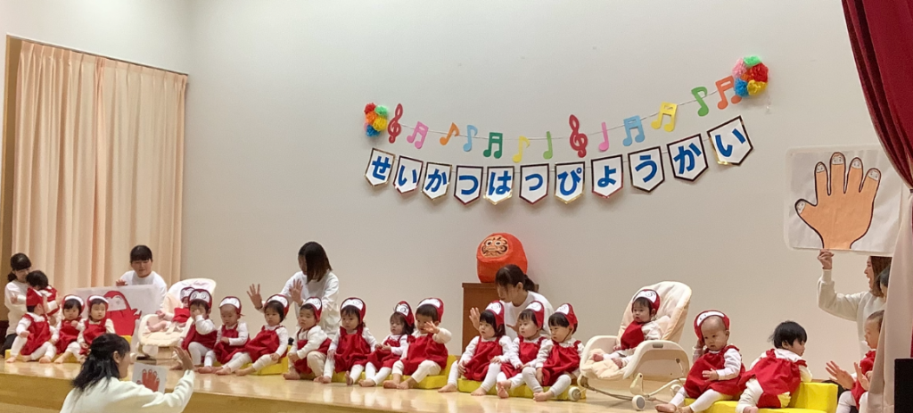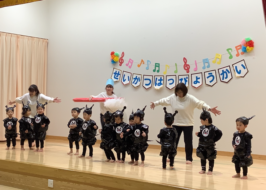 1月24日(金)は2歳児、1歳児、0歳児さんの発表会でした。
