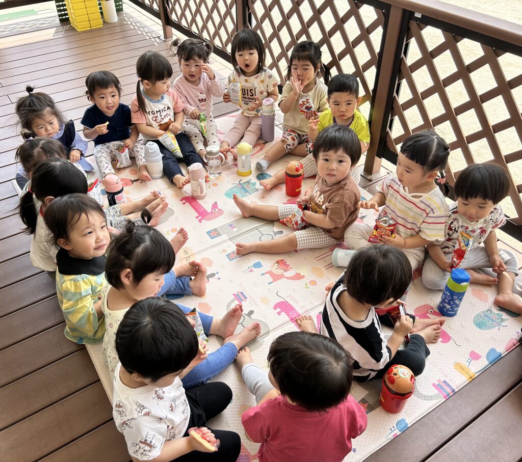 園外保育の日は、テラスでおうちから持ってきたおやつを食べました😋