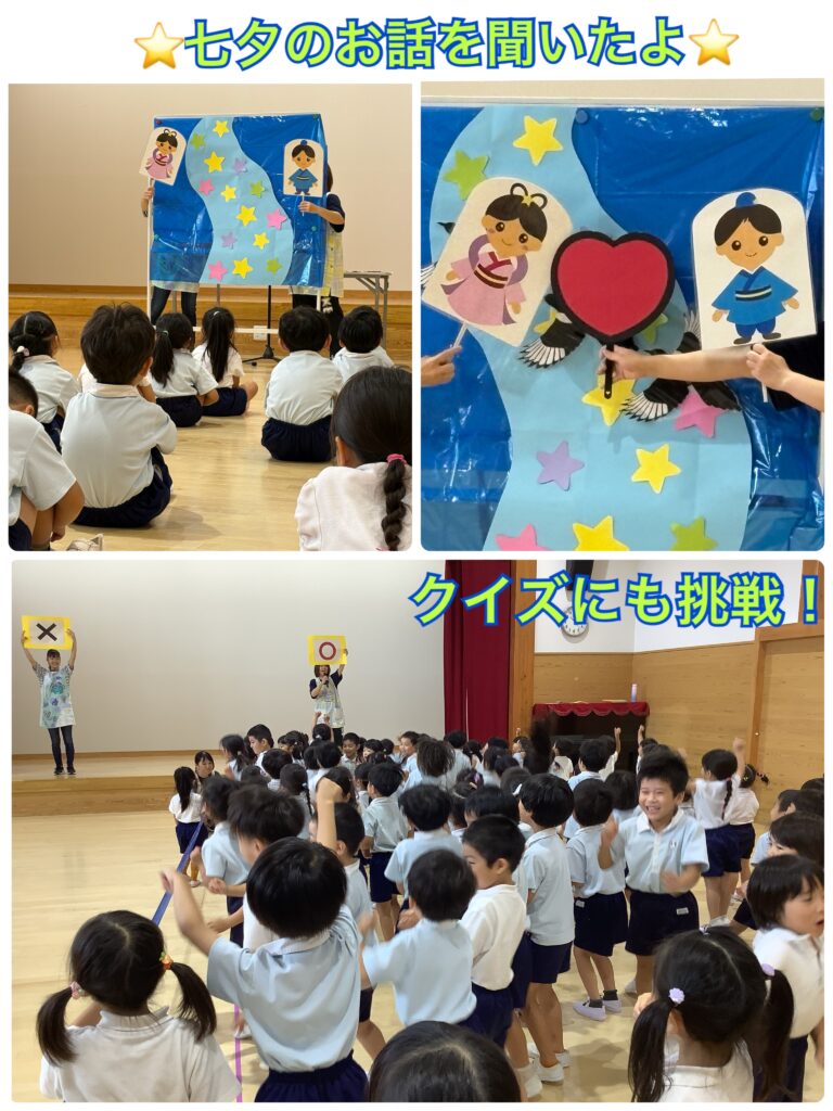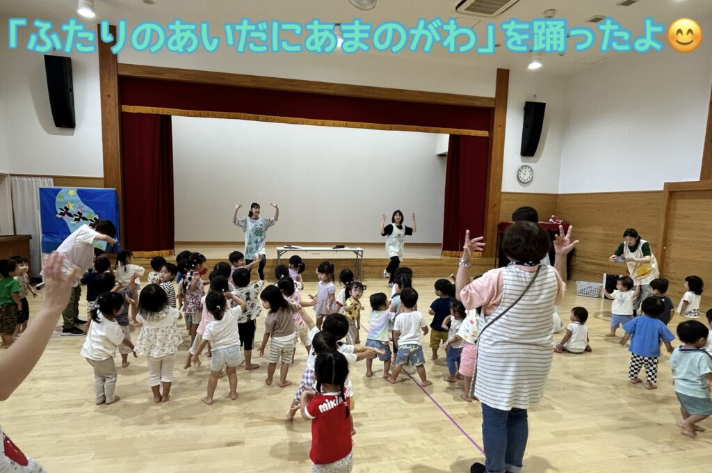 七夕の由来のペープサートを見たり、みんなで元気いっぱいダンスを踊ったりしました😊🎵