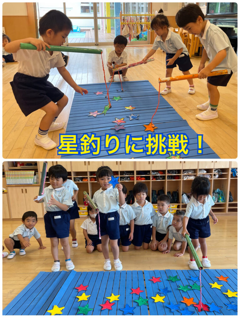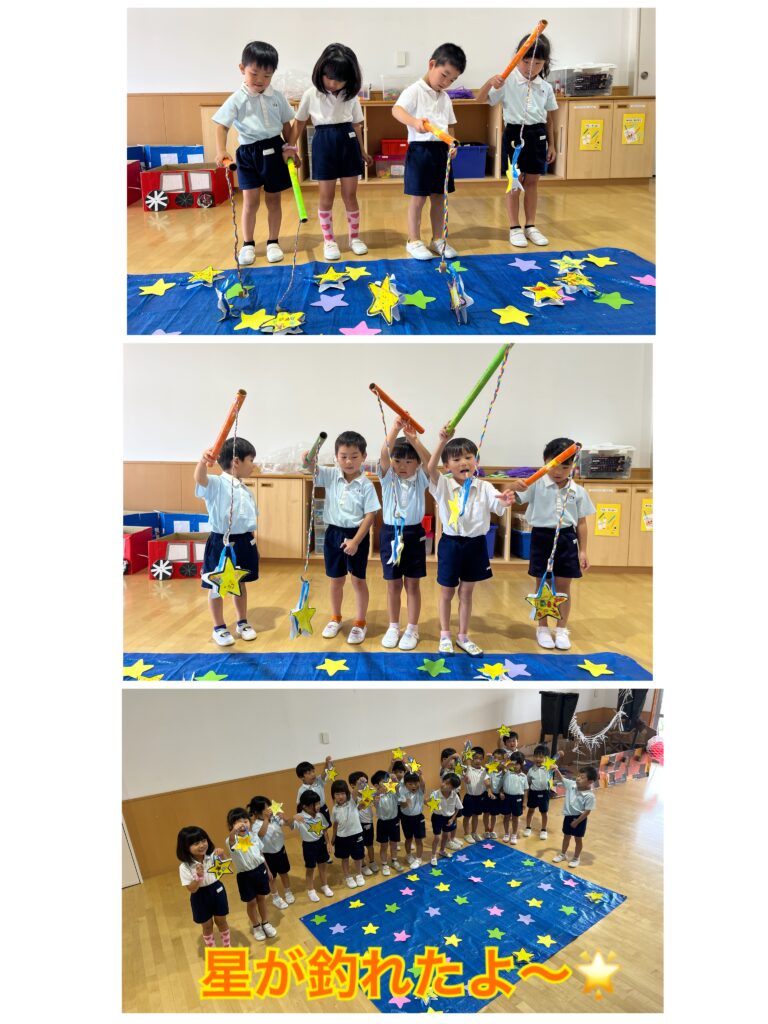 その後は、自分たちで作った星で釣りゲームもしました🌟星を釣ろうと真剣な様子!夢中になってやっていました☺️
