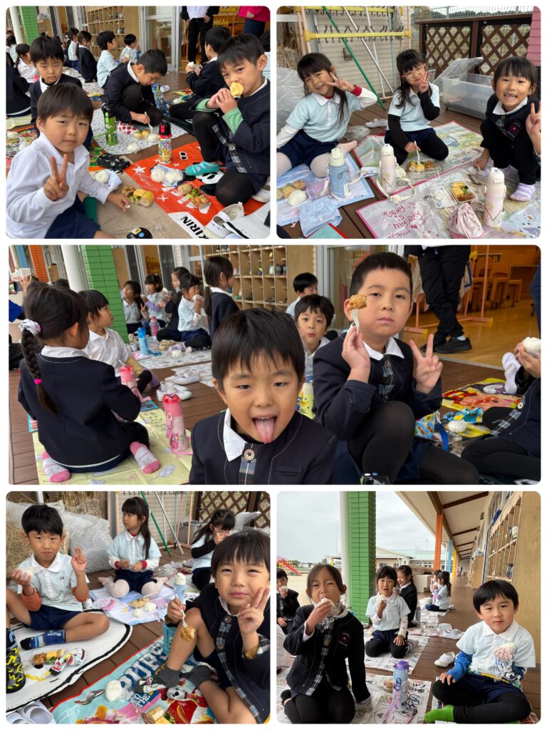 園に戻ってから自分たちで作ったおにぎりをいただきました。